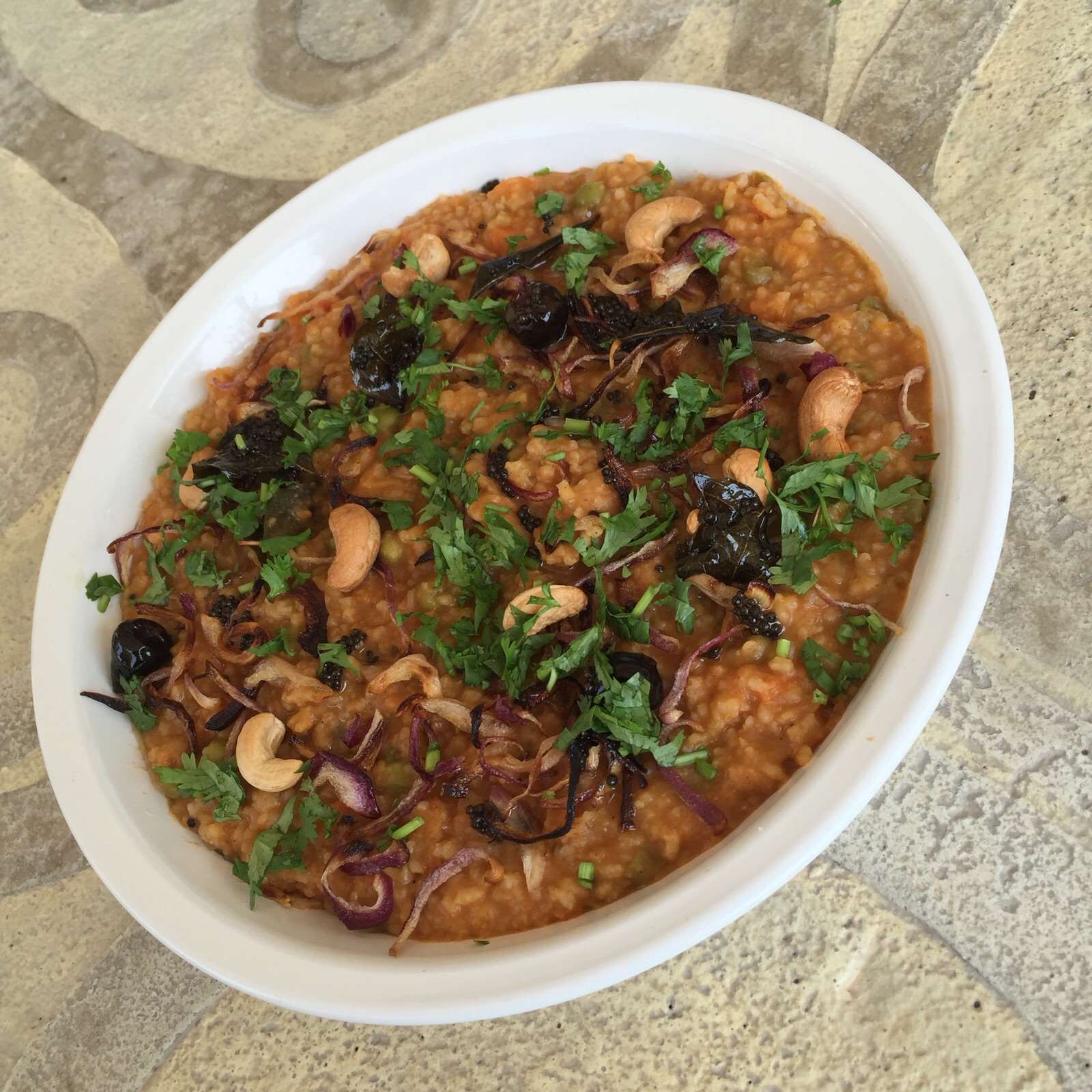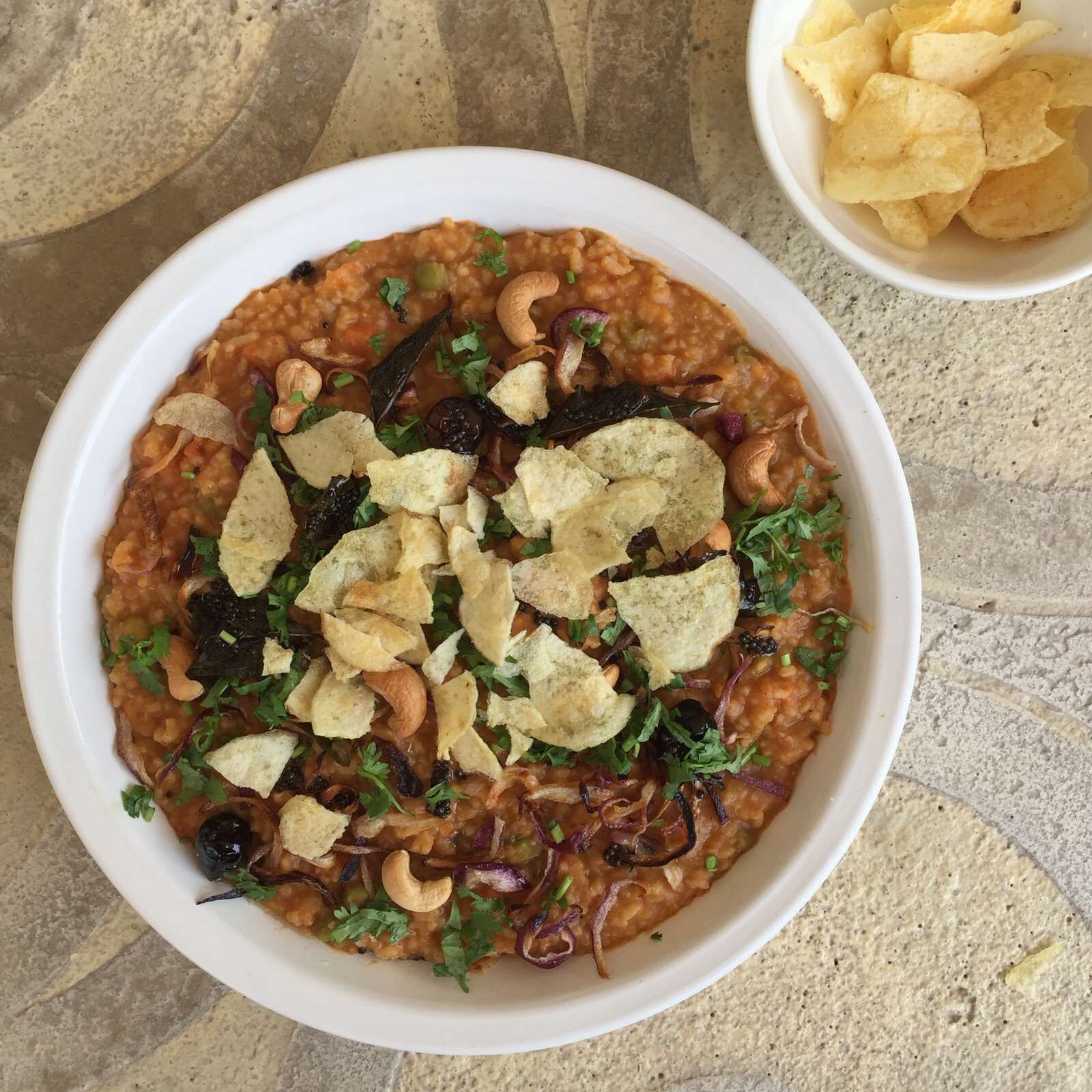 If you’re having guests over for dinner this Diwali and you’re in need of a tasty and wholesome Indian vegetarian dish to serve, you could try making Bisi Bele Bhath (alternatively, bath or bhaath)! A popular rice dish from South India, it’s also a big hit at my house! Bisi bele bhath basically means ‘hot lentil rice’, and is prepared with spices, tamarind pulp and vegetables. At my house, we like to sprinkle warm roasted cashews, crushed potato chips and fried onions over the top prior to serving, but you can always leave any of those toppings off. It is also completely gluten-free so a perfect filling and satisfying dish that can be served as a healthy and complete meal on its own!